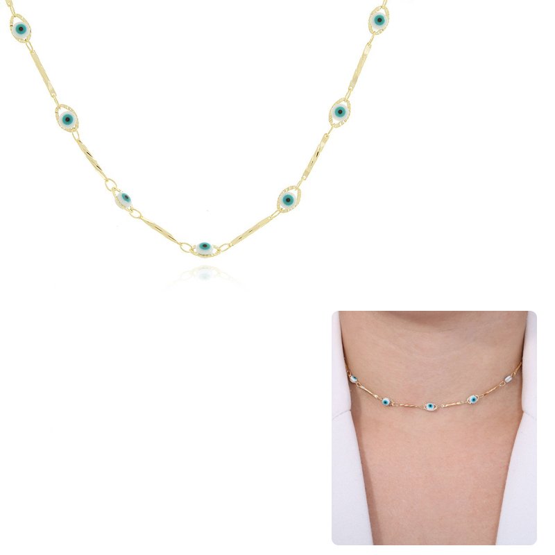 Clt-3097-Fo Colar Choker Palito E Olho Grego