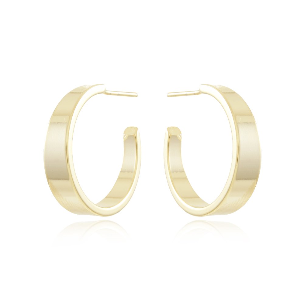 Encante-se com esse brinco!Este lindo brinco MEIA ARGOLA ACHATADA é feito com LATÃO BANHADO A OURO 18K de alta qualidade.