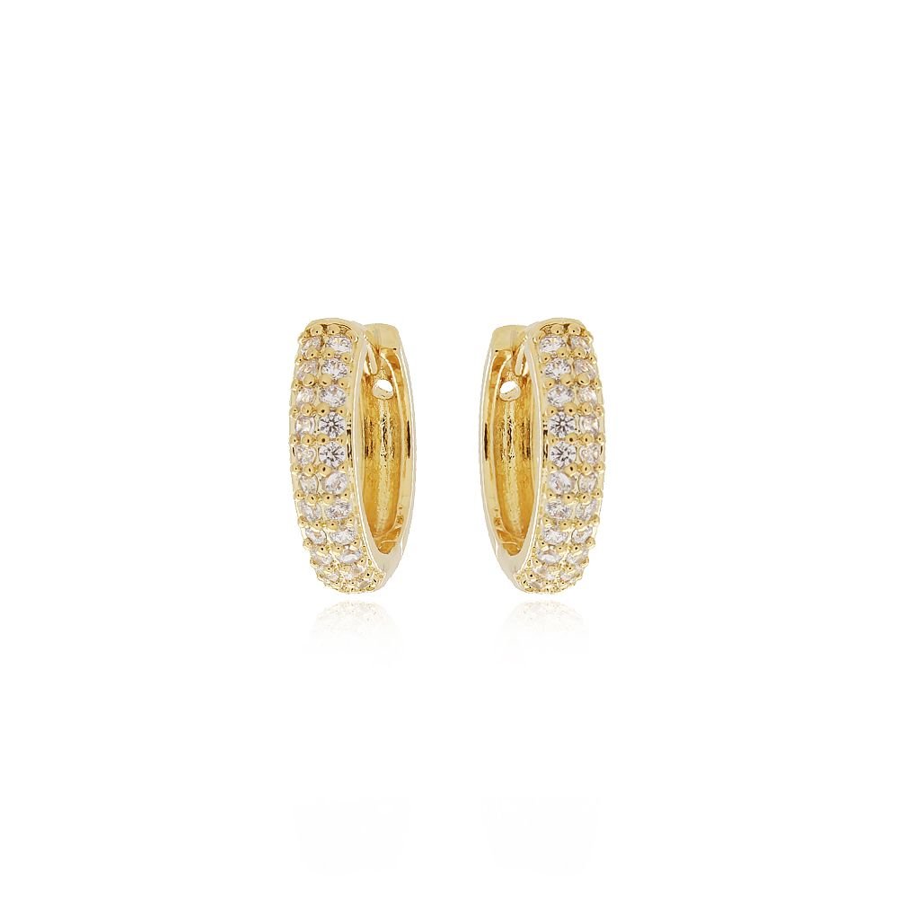 Encante-se com esse brinco!Este lindo brinco ARGOLA ARTICULADA CRAVEJADA é feito com LATÃO BANHADO A OURO 18K de alta qualidade.