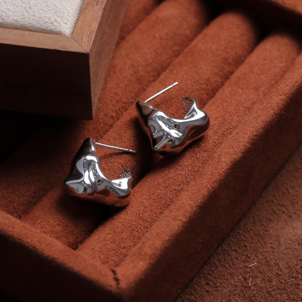 Este lindo brinco MEIA ARGOLA ORGÂNICO é feito com LATÃO BANHADO A RÓDIO BRANCO de alta qualidade.