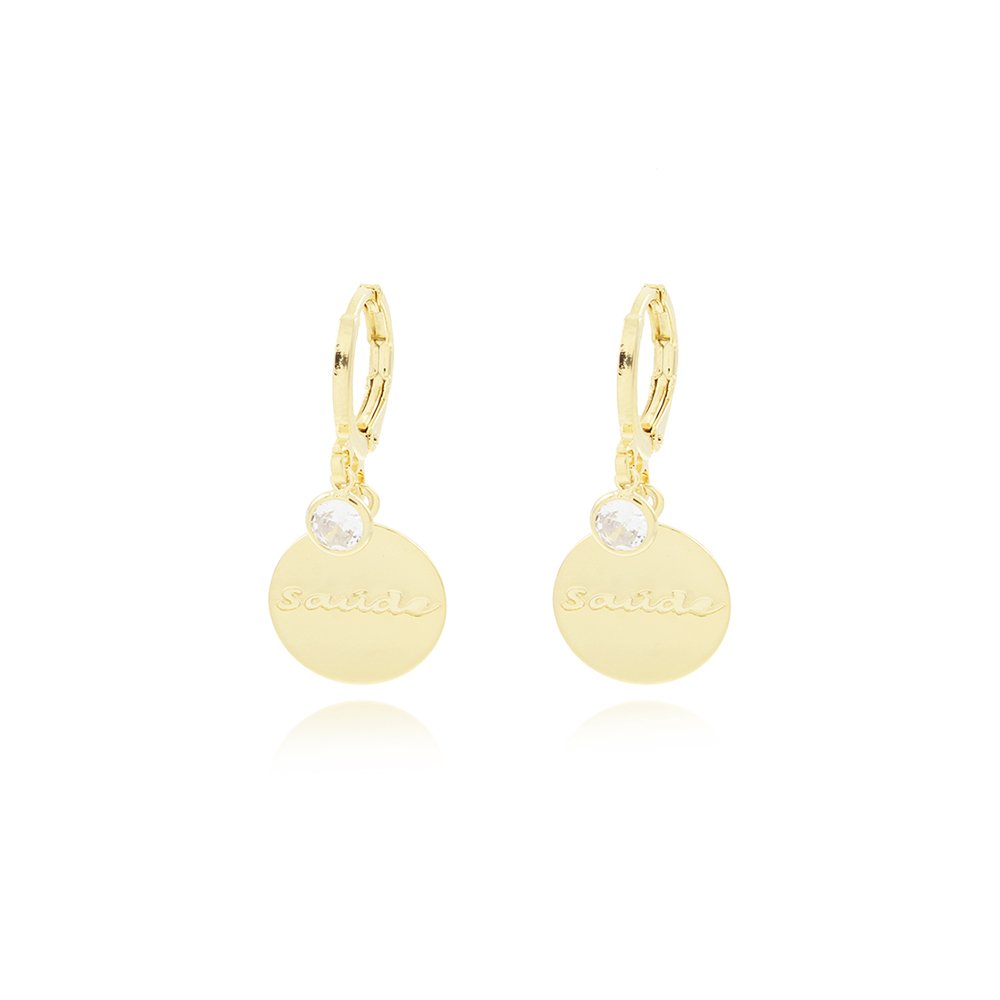 Ag-1486-Do Brinco De Argola Articulada Com Medalha Escrito Saúde E Com Zircônia. Ag-1486-Do Brinco De Argola Articulada Com Medalha Escrito Saúde E Com Zircônia.