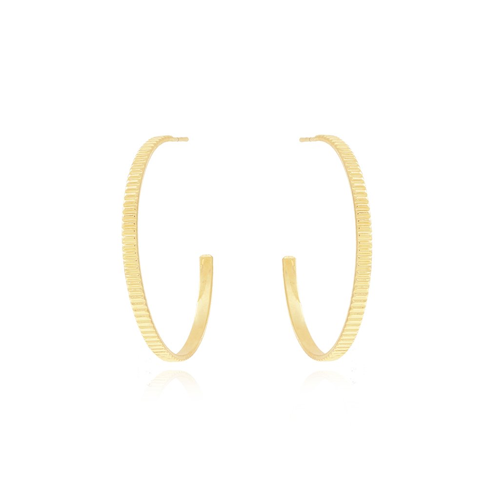 Encante-se com esse brinco!Este lindo brinco DE MEIA ARGOLA DETALHADA é feito com LATÃO BANHADO A OURO 18K de alta qualidade.