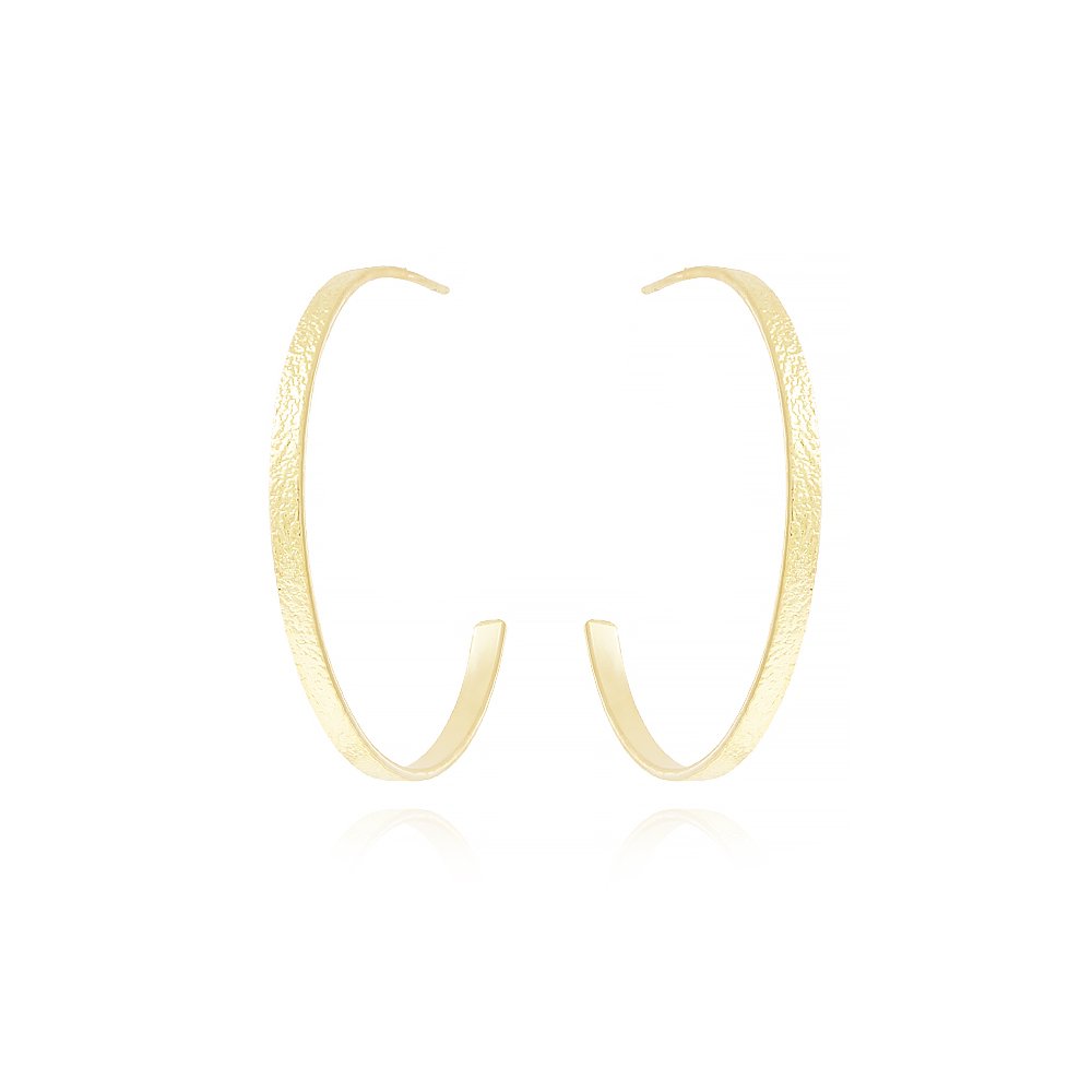 Encante-se com esse brinco!Este lindo brinco DE MEIA ARGOLA TEXTURIZADA é feito com LATÃO BANHADO A OURO 18K de alta qualidade.