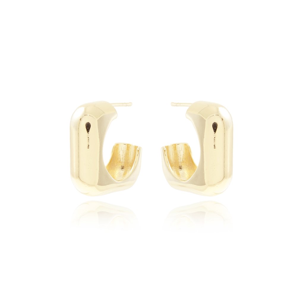 Encante-se com esse brinco!Este lindo brinco MEIA ARGOLA QUADRADA é feito com LATÃO BANHADO A OURO 18K de alta qualidade.