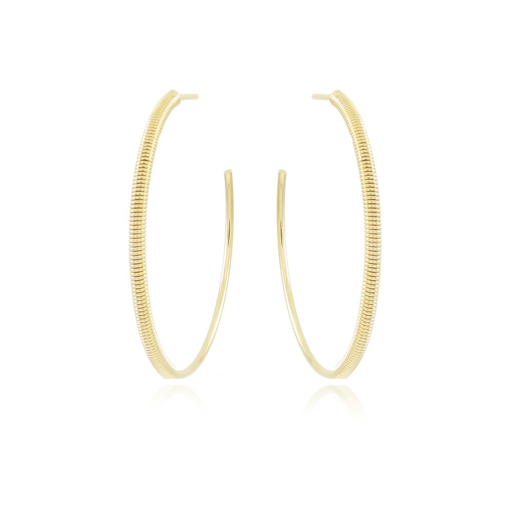 Encante-se com esse brinco!Este lindo brinco BRINCO MEIA ARGOLA DETALHADA é feito com LATÃO BANHADO A OURO 18K de alta qualidade.