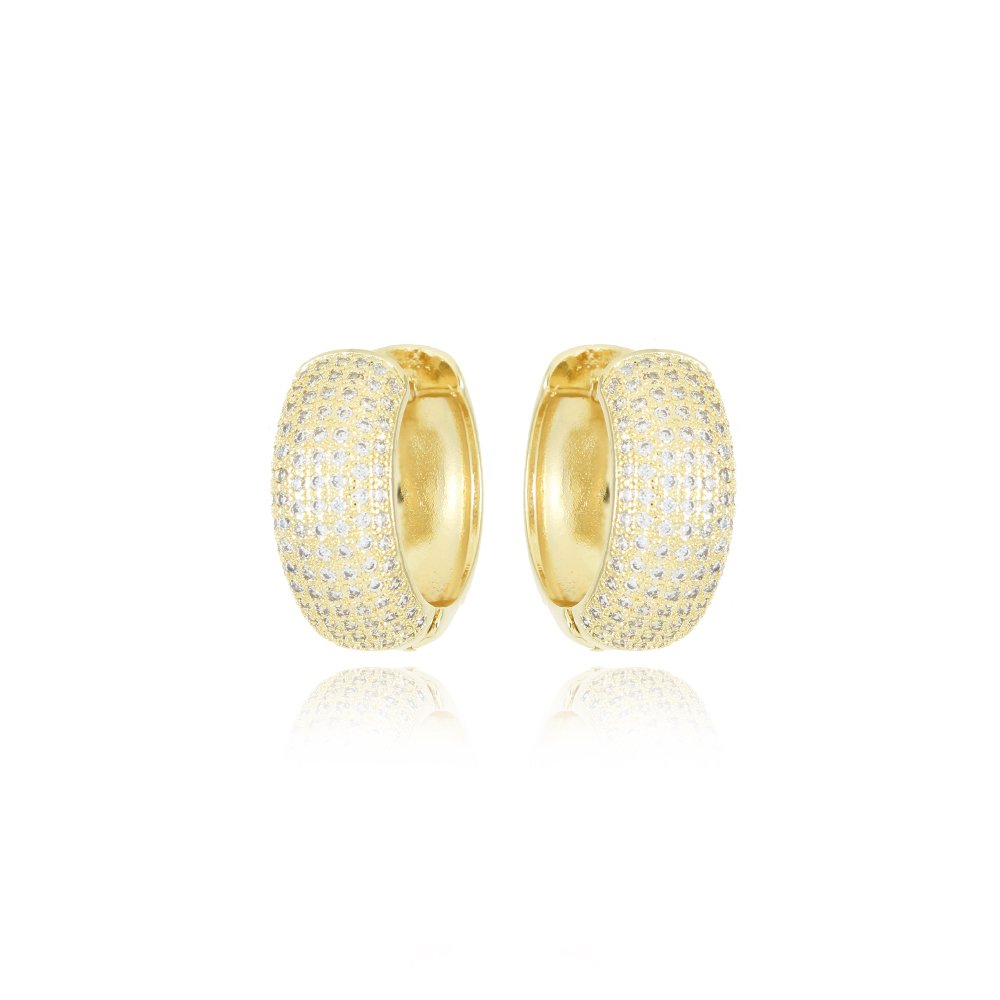 Encante-se com esse brinco!Este lindo brinco DE ARGOLA ARTICULADA CRAVEJADO DE ZIRCÔNIAS CRISTAIS é feito com LATÃO BANHADO A OURO 18K de alta qualidade.