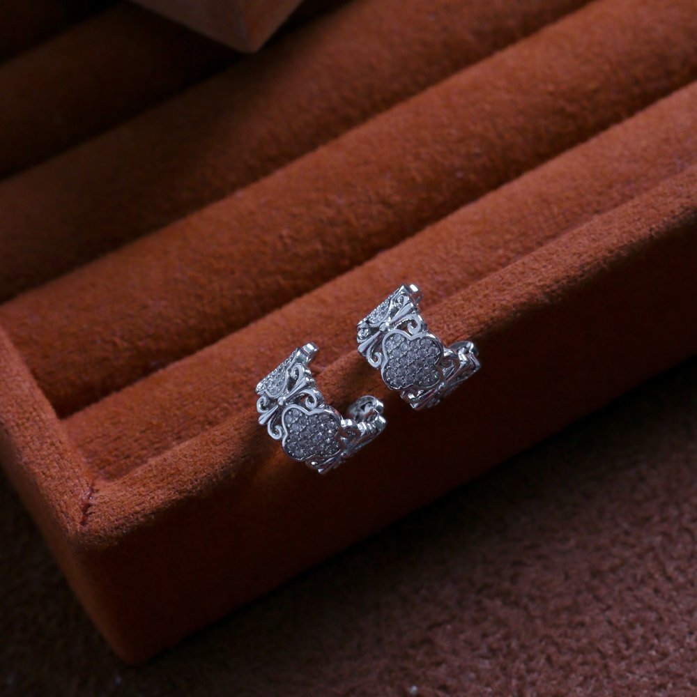 Encante-se com esse brinco!Este lindo brinco MEIA ARGOLA TREVO CRAVEJADA é feito com LATÃO BANHADO A RÓDIO BRANCO de alta qualidade.