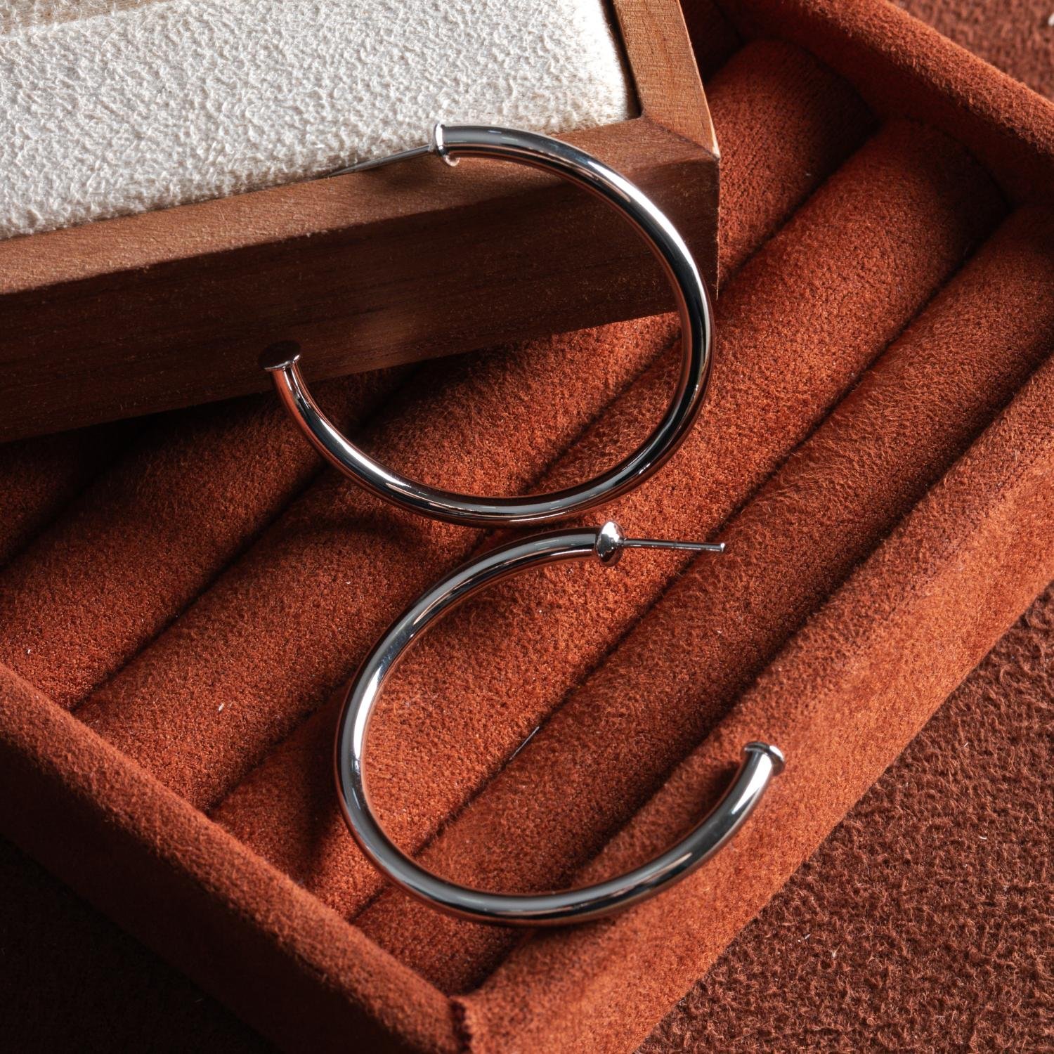Ag-1831-Rd Brinco Meia Argola Tubo Liso - Ródio Branco (40mm).