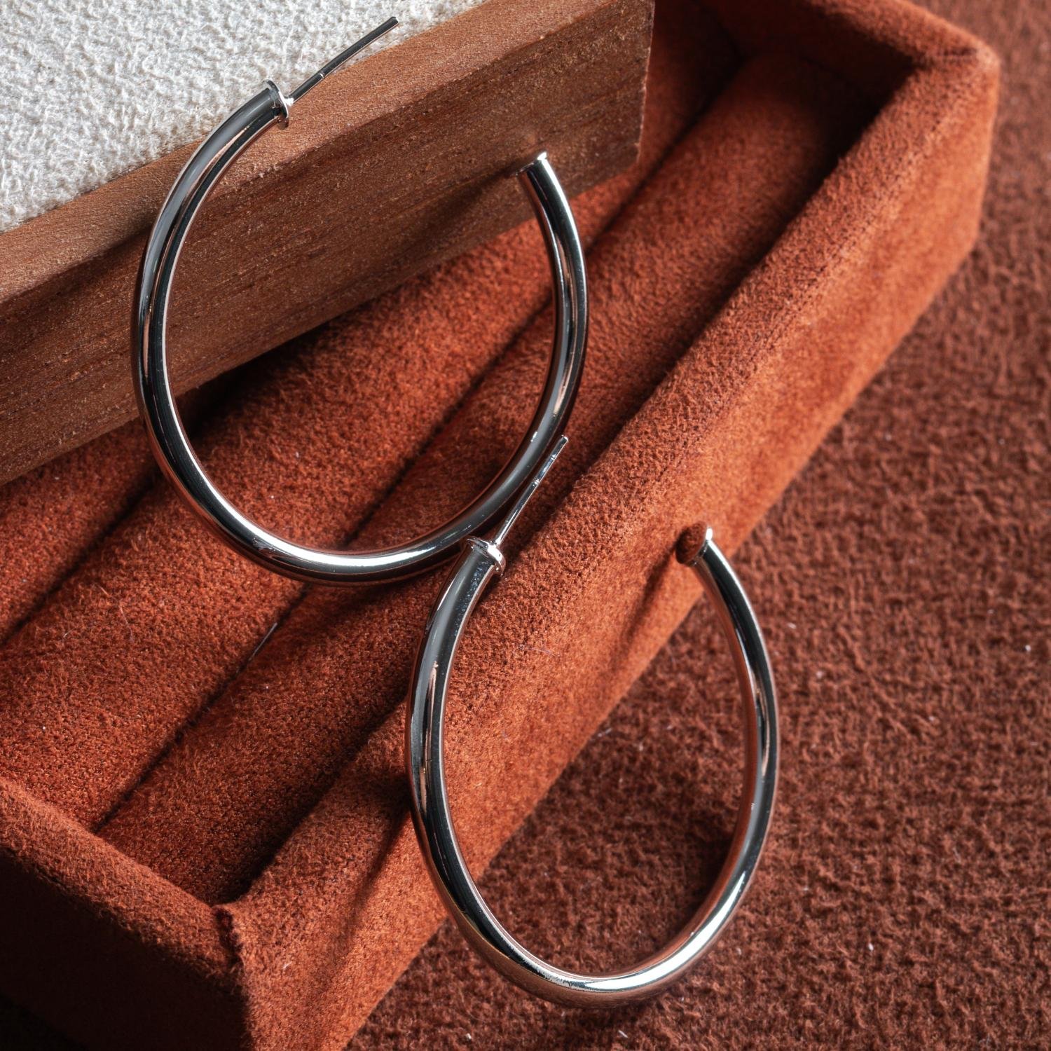 Ag-1832-Rd Brinco Meia Argola Tubo Fino - Ródio Branco (45mm).