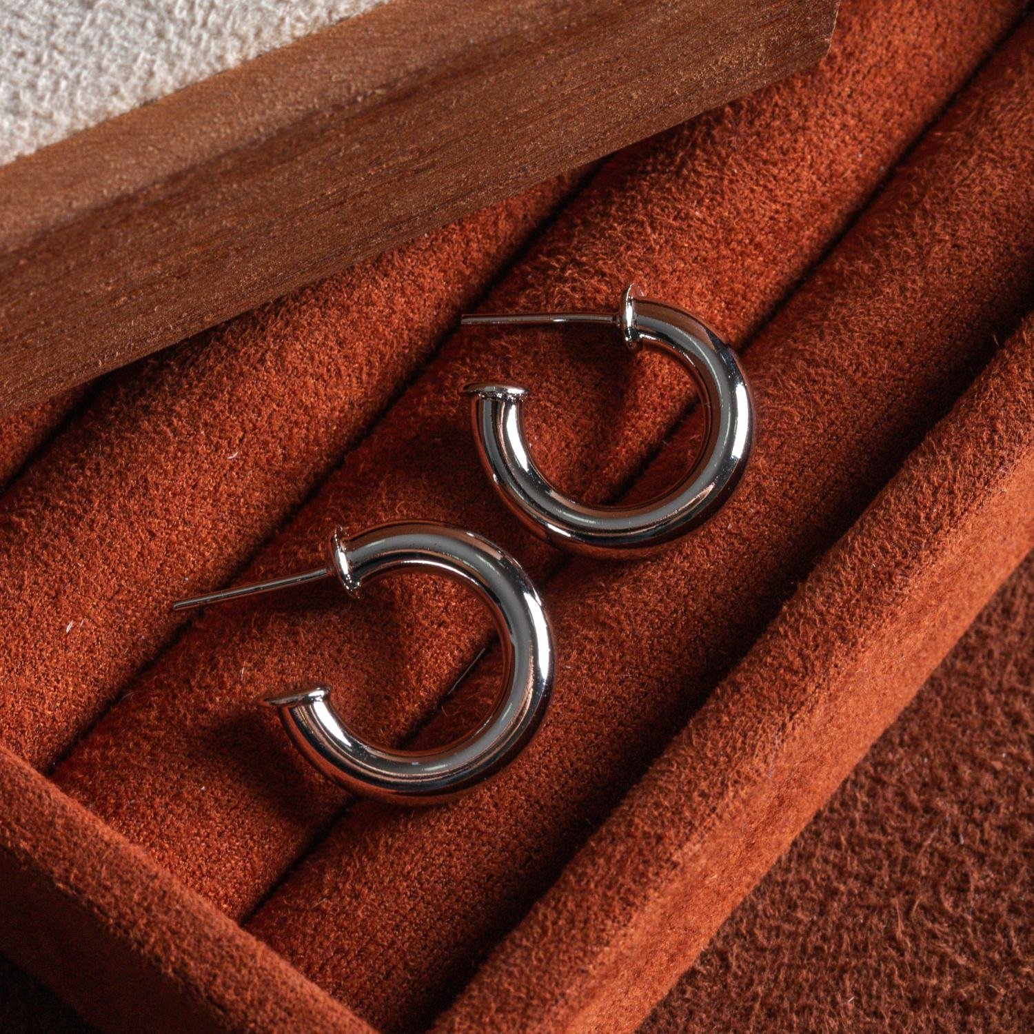 Encante-se com esse brinco!Este lindo brinco MEIA ARGOLA TUBO LISO é feito com LATÃO BANHADO A RÓDIO BRANCO de alta qualidade.