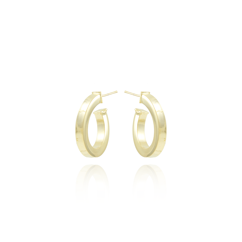 Encante-se com esse brinco!Este lindo brinco MEIA ARGOLA TUBO QUADRADO é feito com LATÃO BANHADO A OURO 18K de alta qualidade.