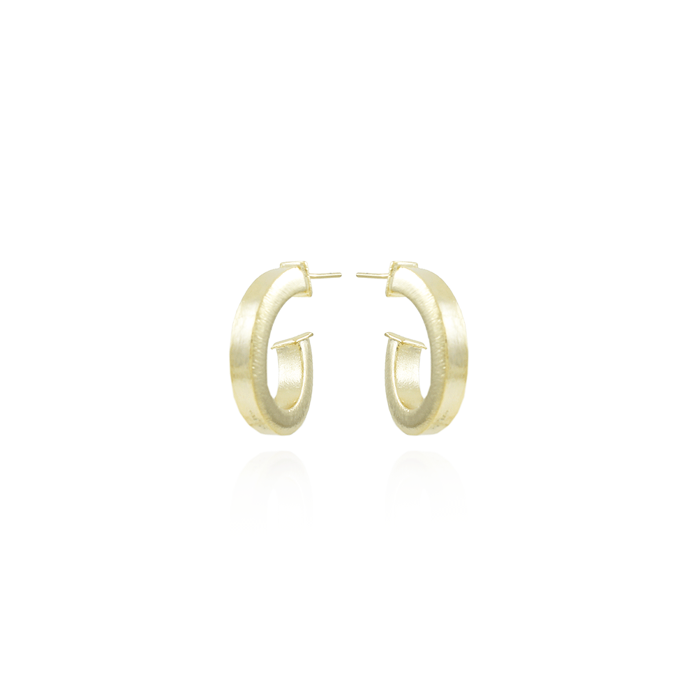 Encante-se com esse brinco!Este lindo brinco MEIA ARGOLA QUADRADO LIXADO é feito com LATÃO BANHADO A OURO 18K de alta qualidade.
