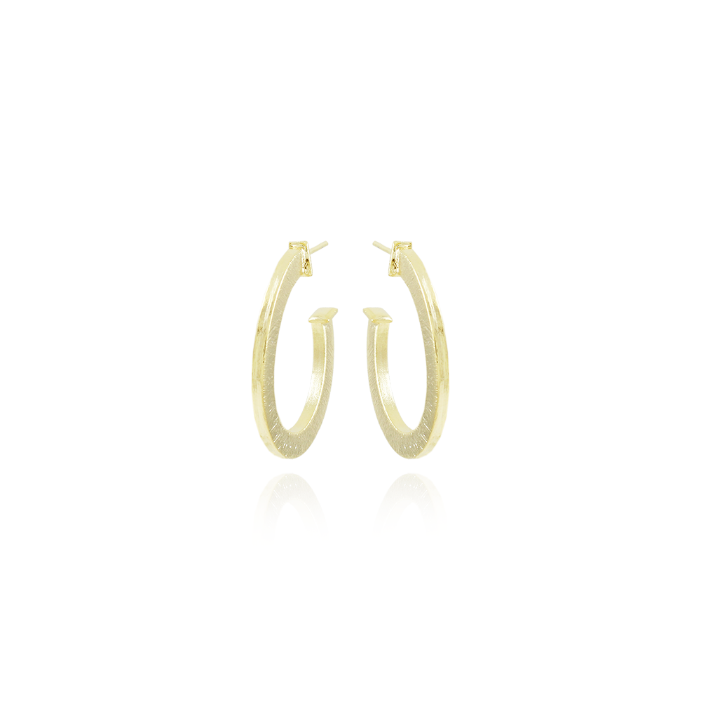 Encante-se com esse brinco!Este lindo brinco MEIA ARGOLA RETANGULAR LIXADO é feito com LATÃO BANHADO A OURO 18K de alta qualidade.
