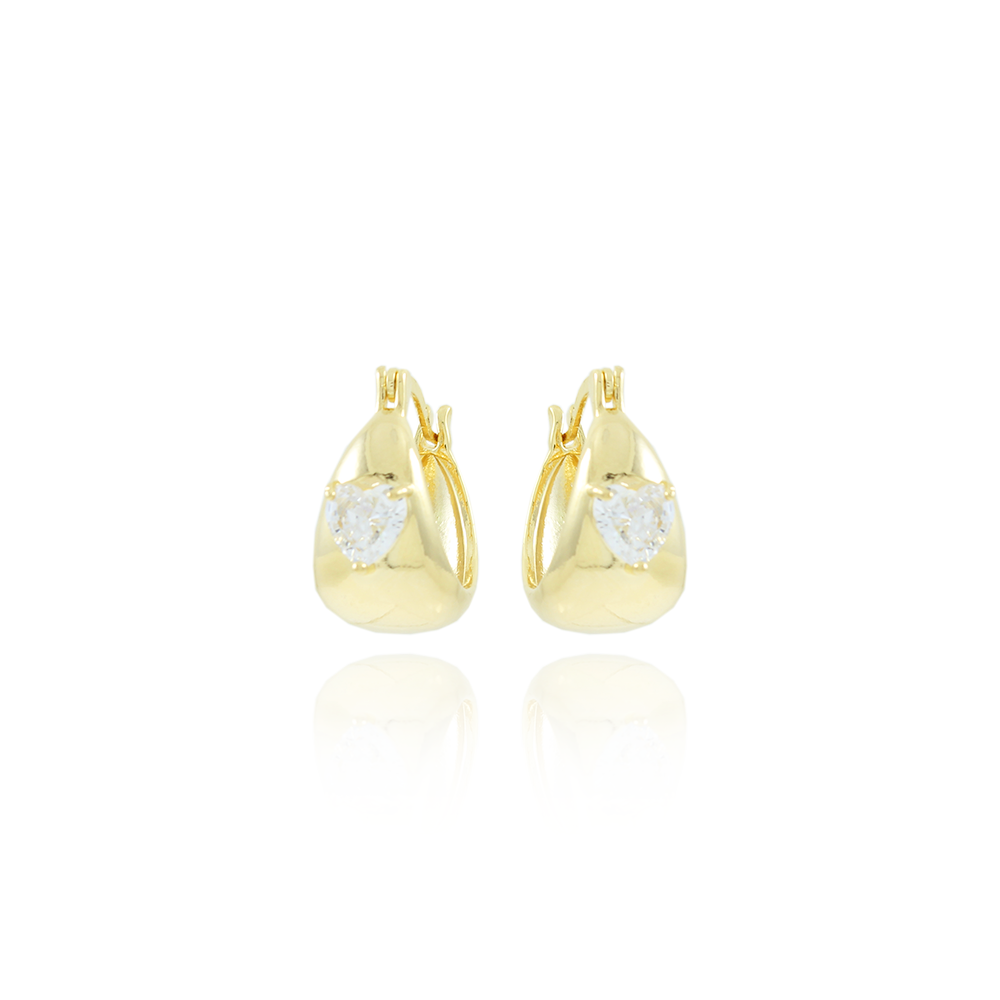 Encante-se com esse brinco!Este lindo brinco MEIA ARGOLA COM CORAÇÃO CRISTAL E FECHO ITALIANO é feito com LATÃO BANHADO A OURO 18K de alta qualidade.