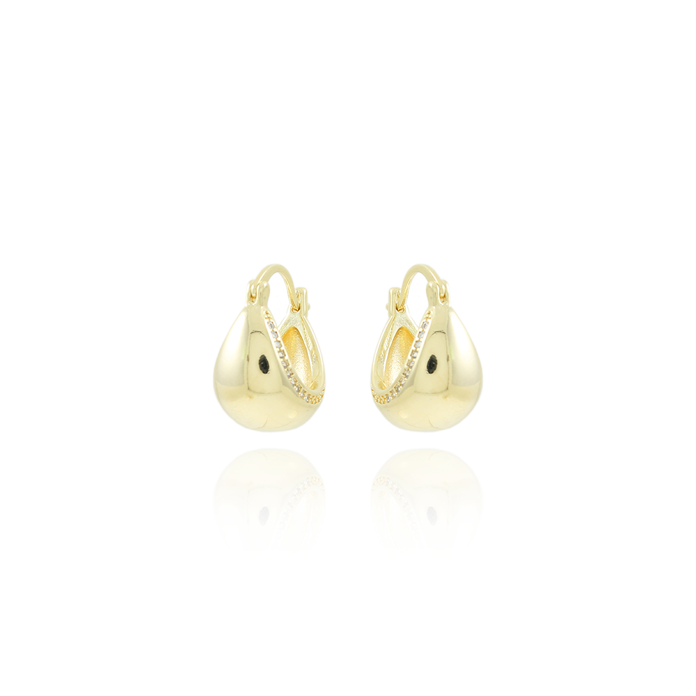 Encante-se com esse brinco!Este lindo brinco MEIA ARGOLA COM ZIRCÔNIAS CRISTAIS NA LATERAL E FECHO ITALIANO é feito com LATÃO BANHADO A OURO 18K de alta qualidade.