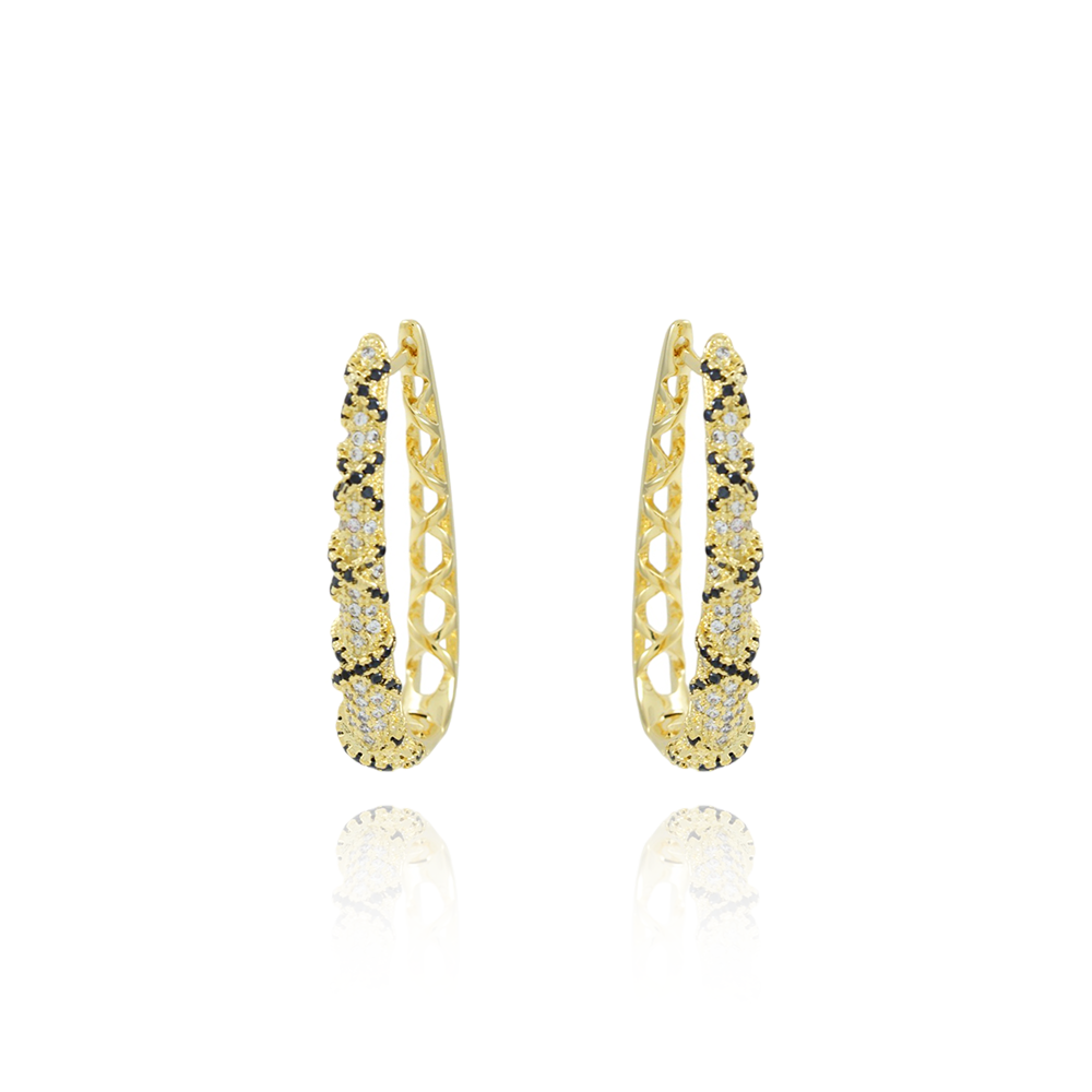 Encante-se com esse brinco!Este lindo brinco ARGOLA ARTICULADA DETALHADA CRISTAL + PRETO é feito com LATÃO BANHADO A OURO 18K de alta qualidade.