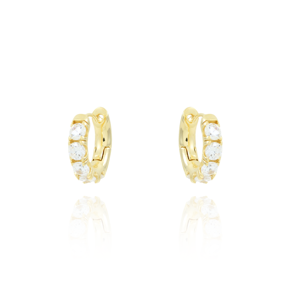 Encante-se com esse brinco!Este lindo brinco DE ARGOLA ARTICULADA CRAVEJADO DE ZIRCÔNIAS CRISTAIS é feito com LATÃO BANHADO A OURO 18K de alta qualidade.