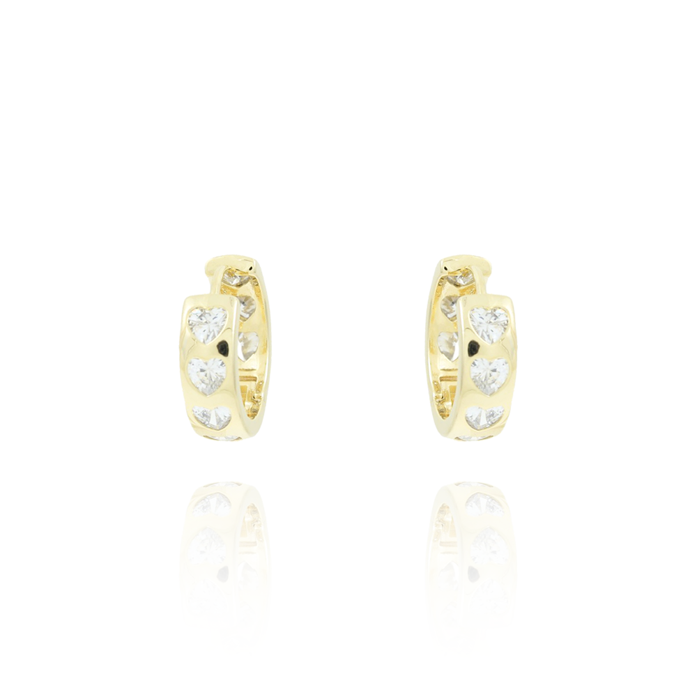 Encante-se com esse brinco!Este lindo brinco DE ARGOLA ARTICULADA COM CORAÇÕES CRAVEJADOS CRISTAIS é feito com LATÃO BANHADO A OURO 18K de alta qualidade.