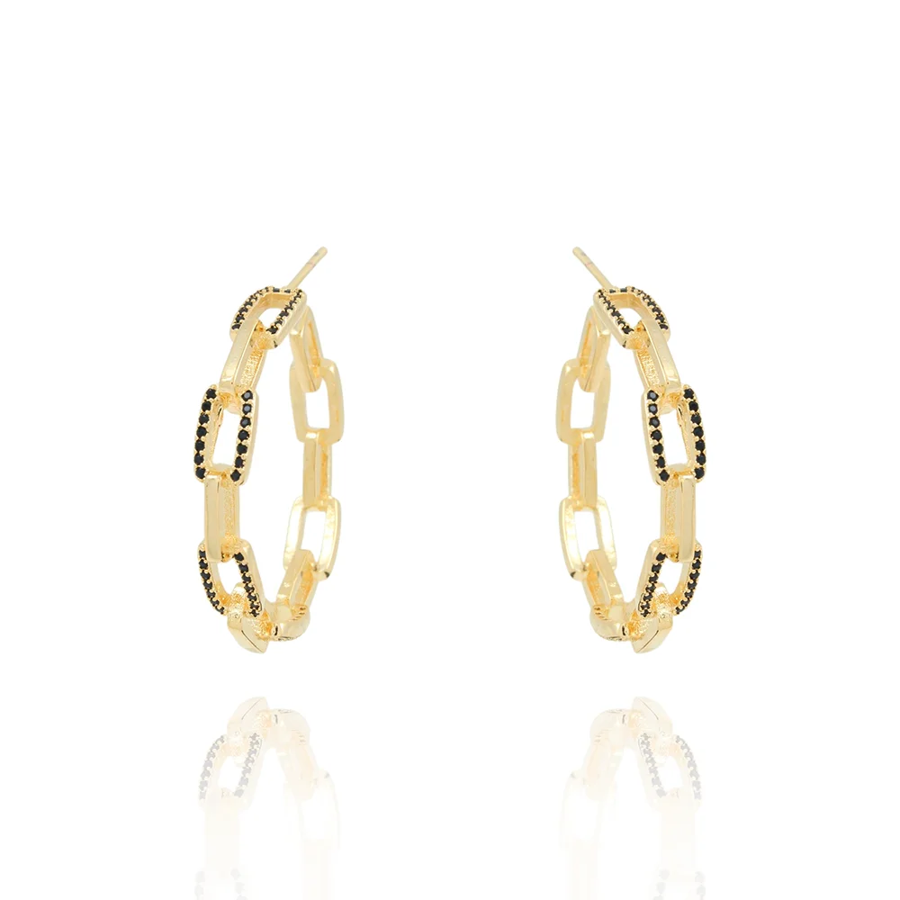 Ag-1954-Do Brinco Meia Argola De Elos Cravejados Preto.