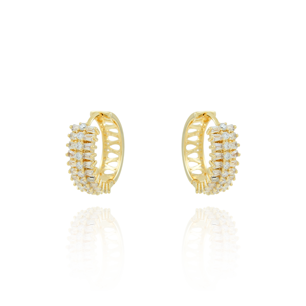 Encante-se com esse brinco!Este lindo brinco DE ARGOLA ARTICULADA CRAVEJADO DE ZIRCÔNIAS CRISTAIS é feito com LATÃO BANHADO A OURO 18K de alta qualidade.