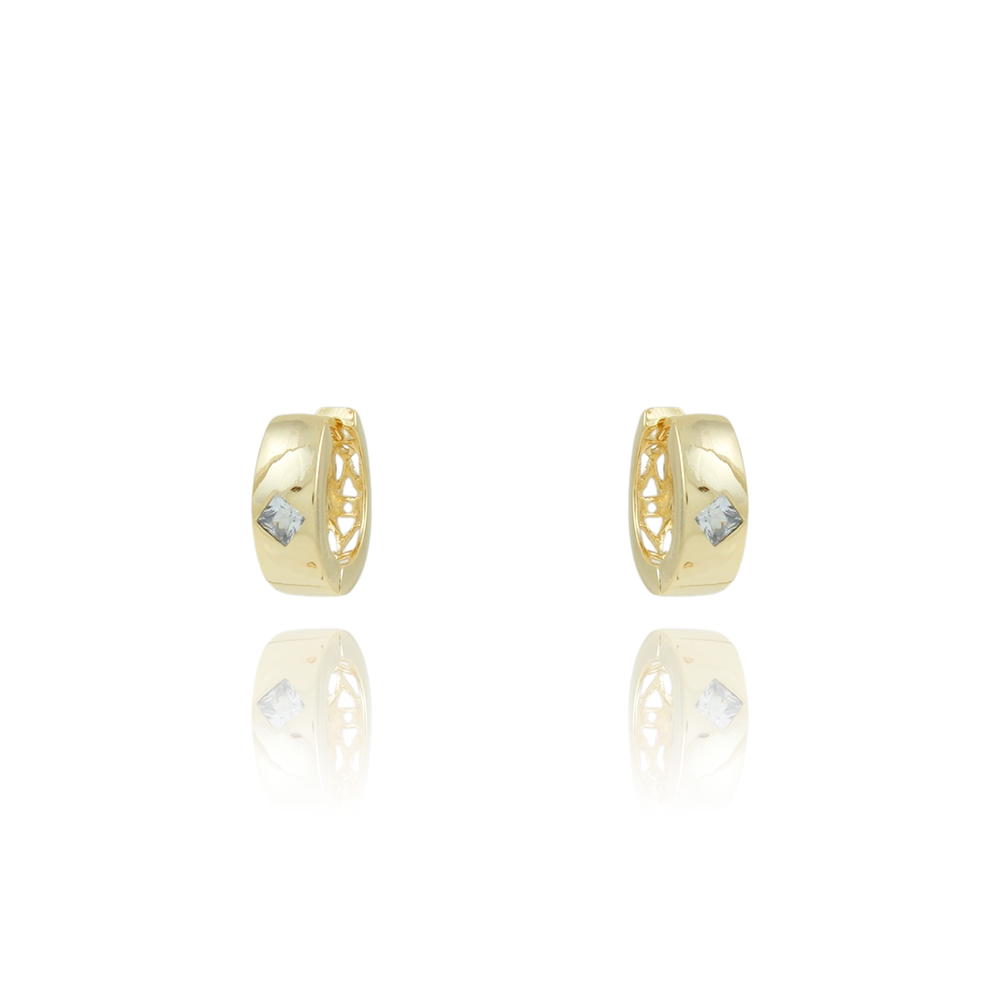 Encante-se com esse brinco!Este lindo brinco DE ARGOLA ARTICULADA LISA COM ZIRCÔNIA CRISTAL é feito com LATÃO BANHADO A OURO 18K de alta qualidade.