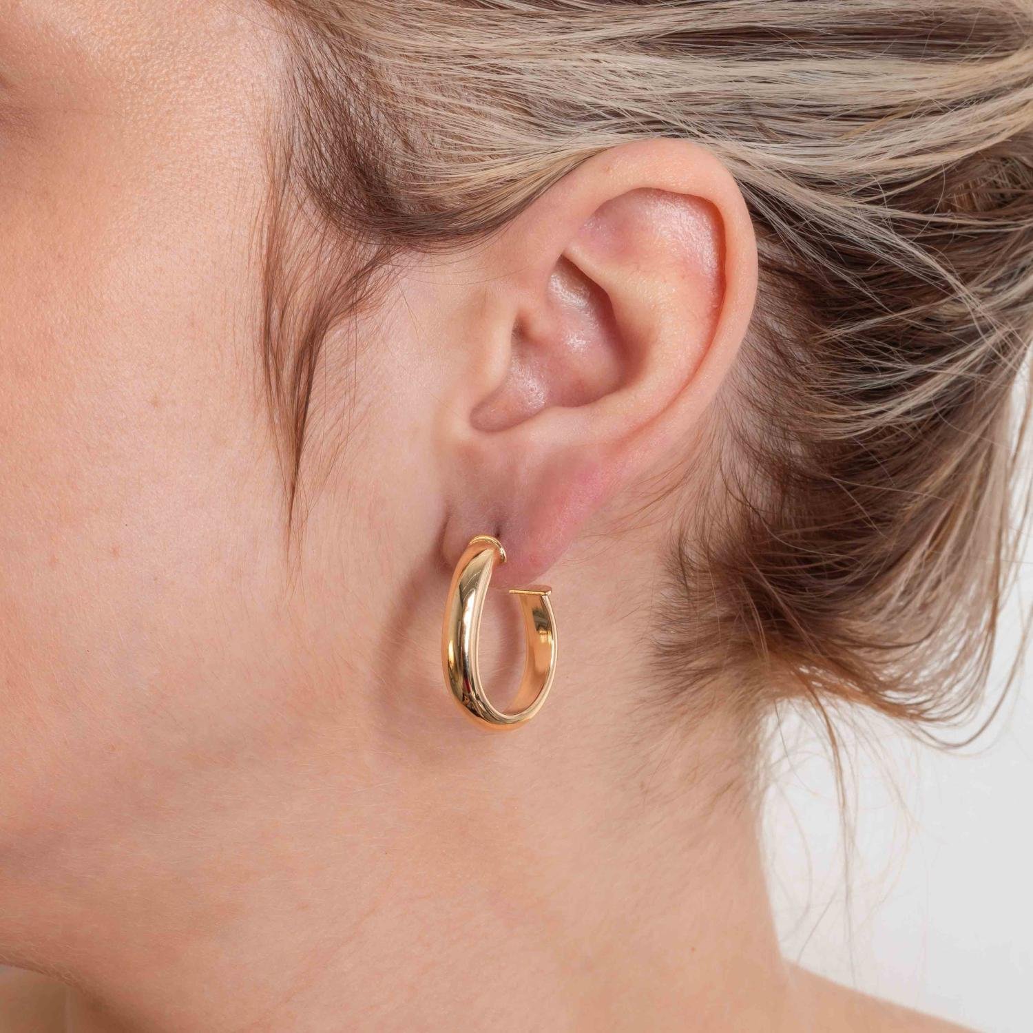 Encante-se com esse brinco!Este lindo brinco MEIA ARGOLA ABAULADA LISA é feito com LATÃO BANHADO A OURO 18K de alta qualidade.