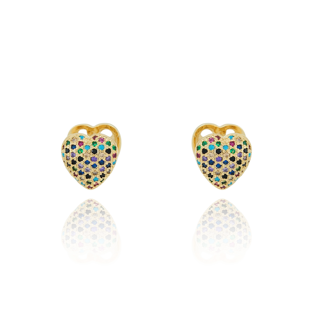 Ag-2042-Do Brinco De Argola Articulada De Coração Cravejado Colorido.
