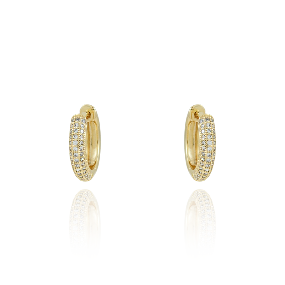 O brinco cravejado é uma peça clássica com toque moderno.Suas micro zircônias garantem um brilho elegante.