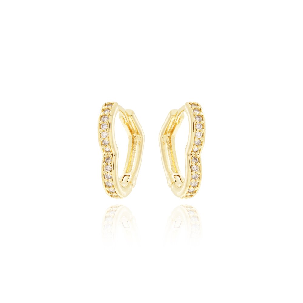 Encante-se com esse brinco!Este lindo brinco ARGOLINHA ARTICULADA CORAÇÃO CRAVEJADO é feito com LATÃO BANHADO A OURO 18K de alta qualidade.