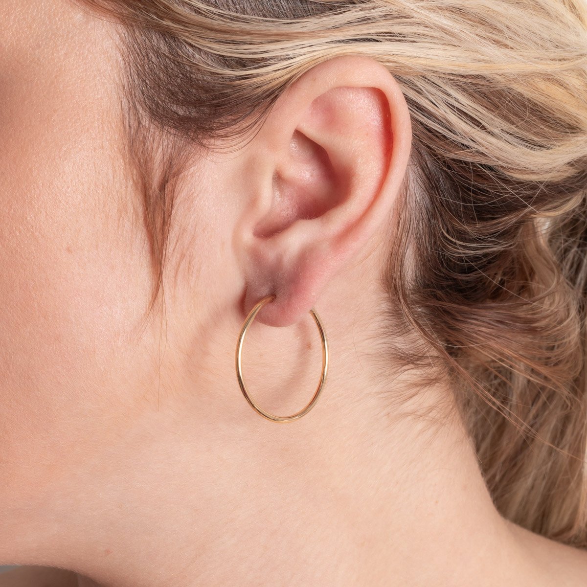 Encante-se com esse brinco!Este lindo brinco MEIA ARGOLA LISA é feito com LATÃO BANHADO A OURO 18K de alta qualidade.