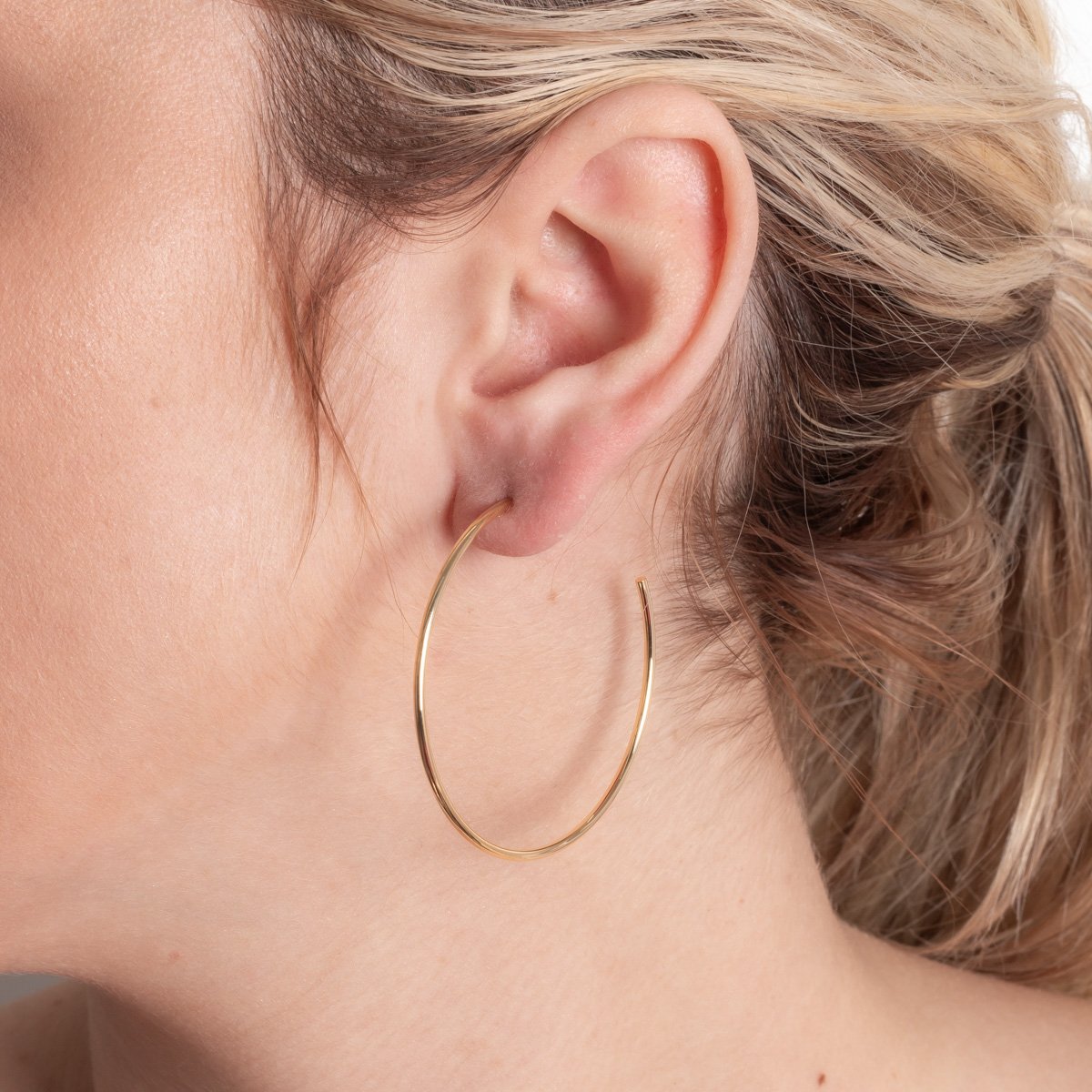Encante-se com esse brinco!Este lindo brinco MEIA ARGOLA LISA é feito com LATÃO BANHADO A OURO 18K de alta qualidade.