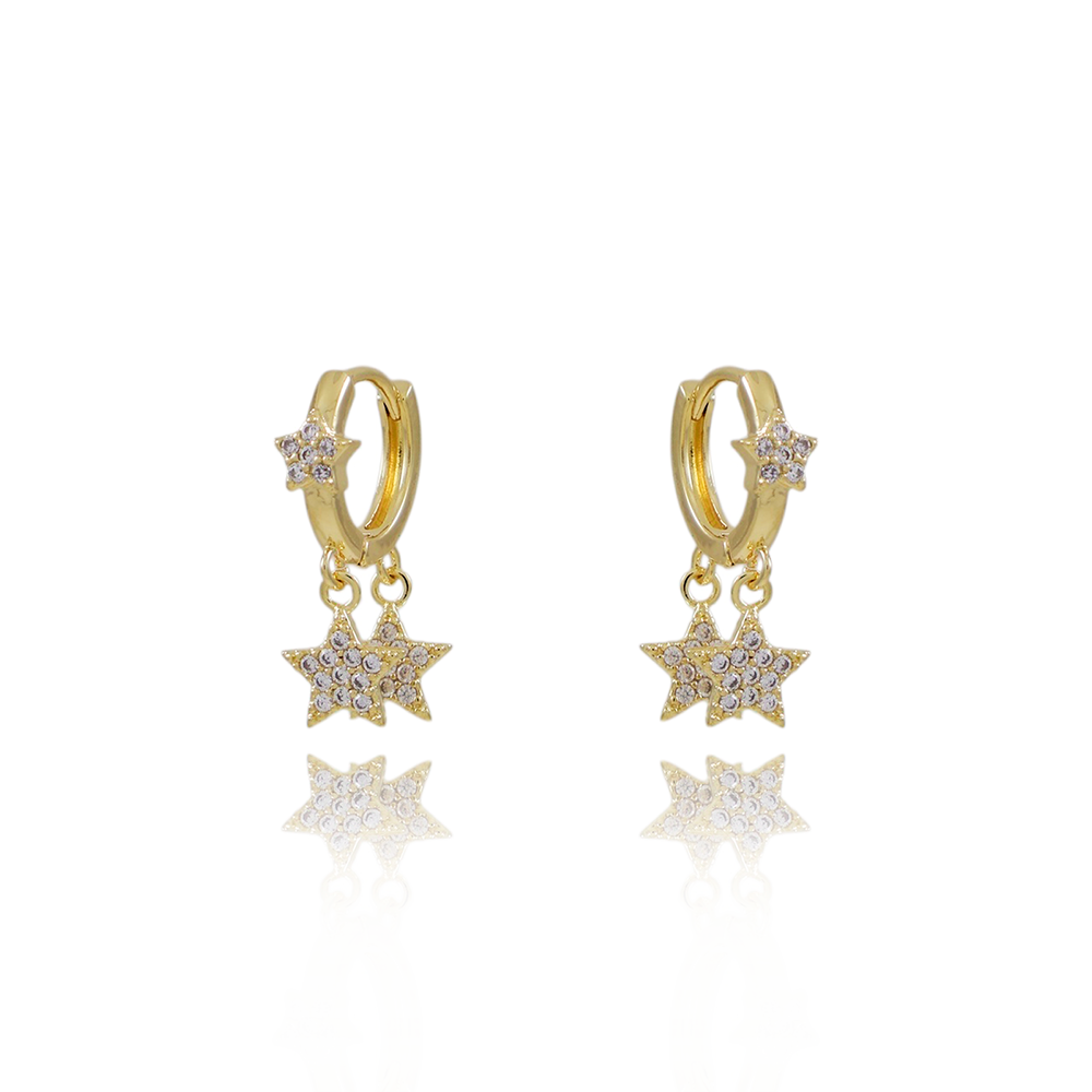 Encante-se com esse brinco!Este lindo brinco ARGOLA ARTICULADA COM ESTRELAS CRISTAIS é feito com LATÃO BANHADO A OURO 18K de alta qualidade.