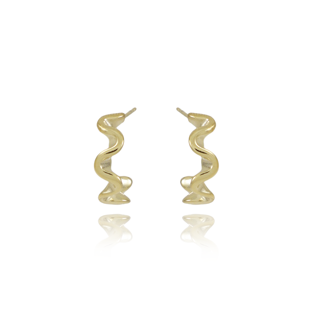 Encante-se com esse brinco!Este lindo brinco MEIA ARGOLA ONDULADA é feito com LATÃO BANHADO A OURO 18K de alta qualidade.