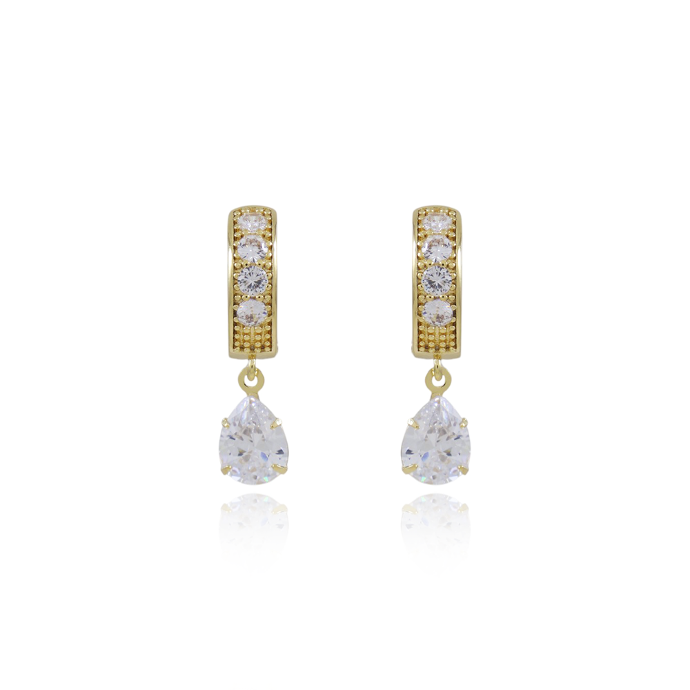 Encante-se com esse brinco!Este lindo brinco ARGOLA ARTICULADA COM PÊNDULO GOTA CRISTAL é feito com LATÃO BANHADO A OURO 18K de alta qualidade.