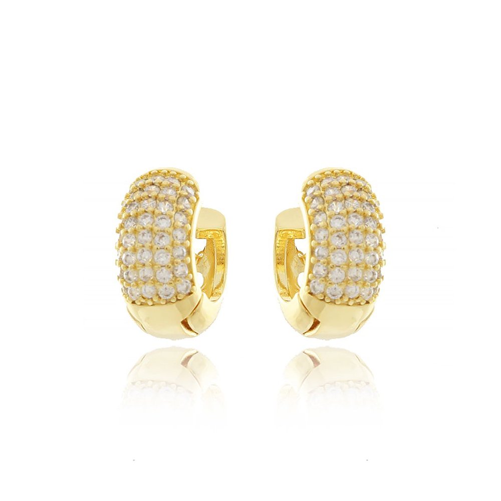 BRINCO DE ARGOLINHA ARTICULADA CRAVEJADO CRISTAL.- PESO: 4,4gr; 12mm; MATERIAL: - LATÃO BANHADO A OURO 18K.