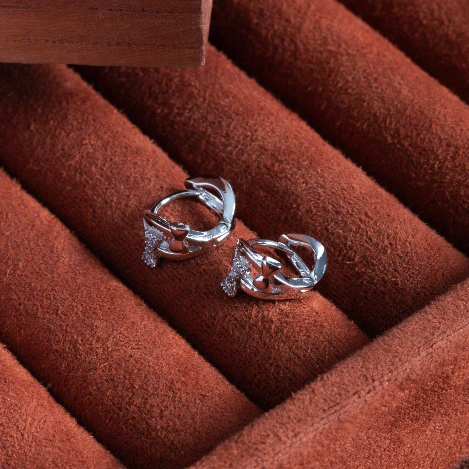 Ag-419-Rd Brinco De Argola Articulada Com Laço Cravejado De Zircõnias - Ródio Branco.
