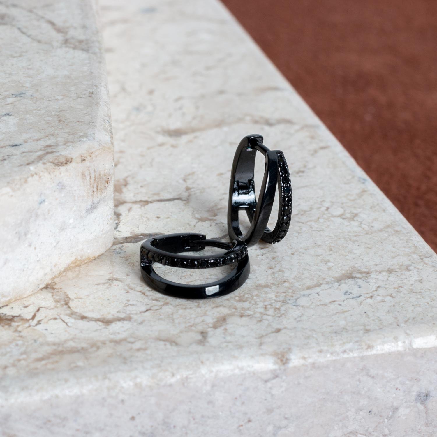 Ag-5000-Black Brinco Argola Articulada Cravejado Preto - Banho Italiano.