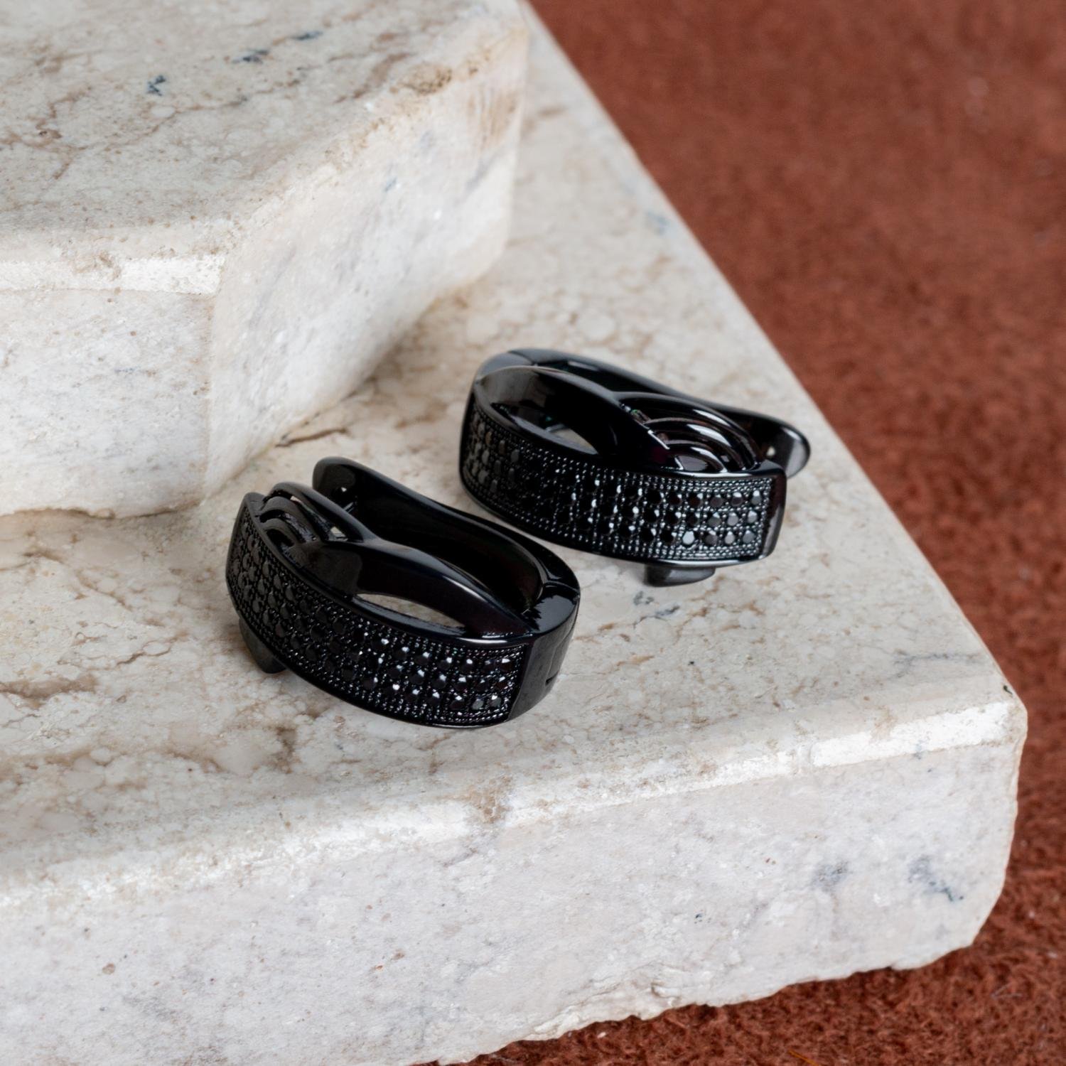 Ag-5027-Black Brinco Argola Articulada Detalhada Preto - Banho Italiano (19mm).