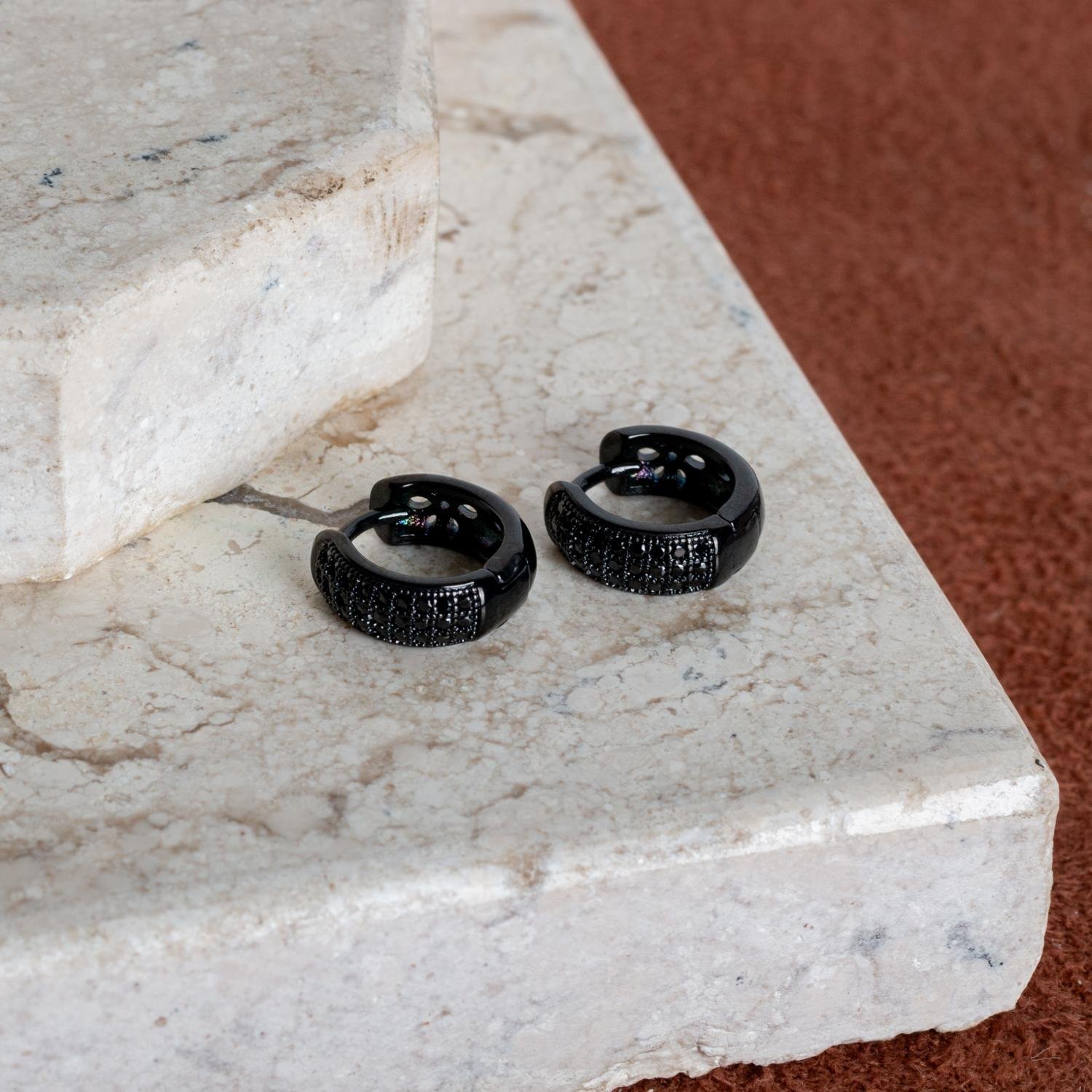 Ag-5033-Black Brinco Argola Articulada Cravejado Preto - Banho Italiano (12mm).