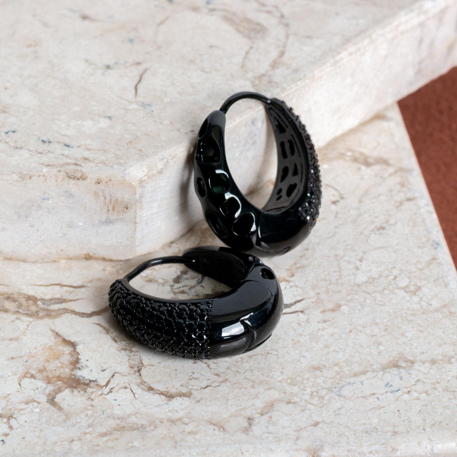 Ag-5037-Black Brinco Argola Articulada Cravejado Preto - Banho Italiano (27mm).