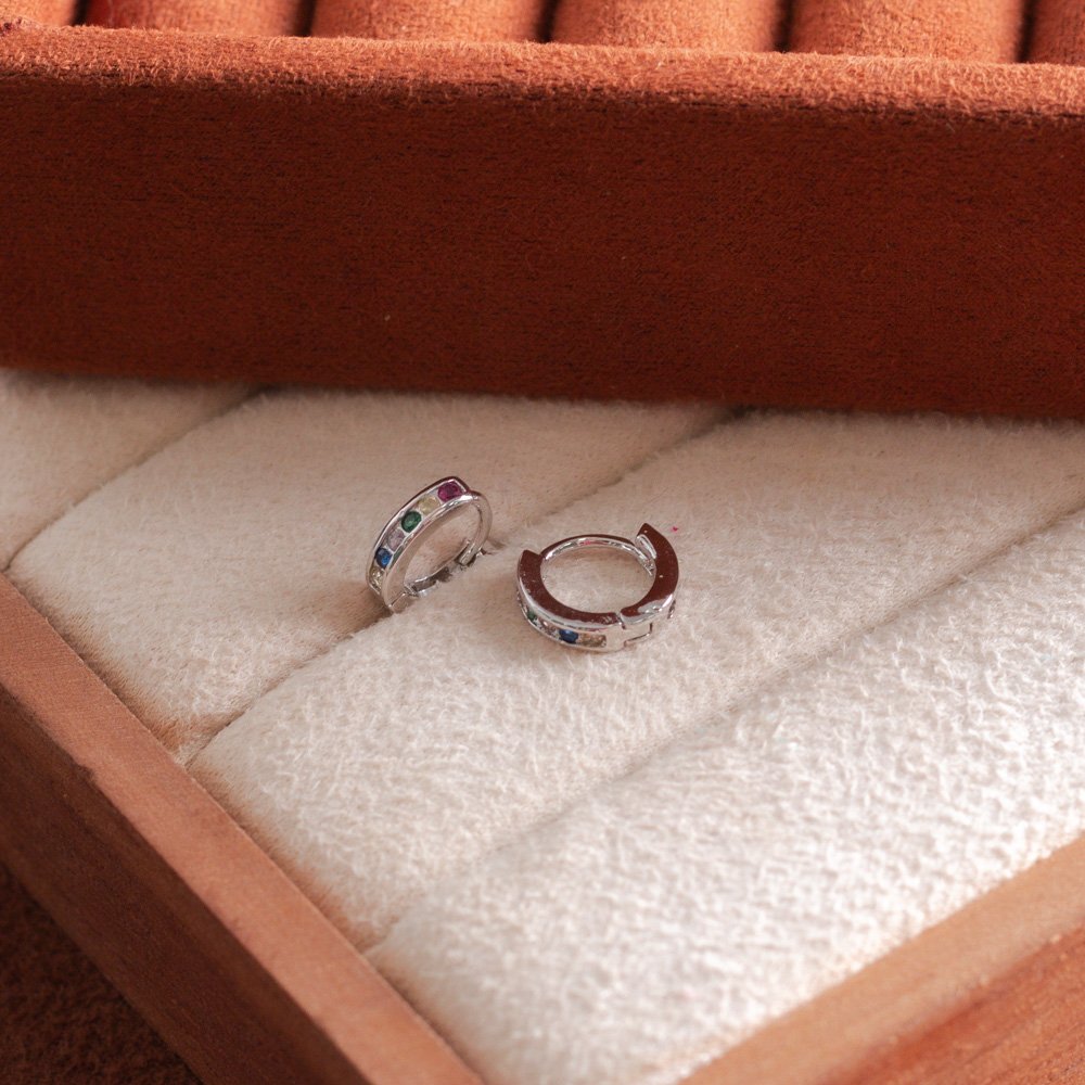 Ag-504-Rd Brinco Argola Articulada Cravejado Colorido - Ródio Branco.