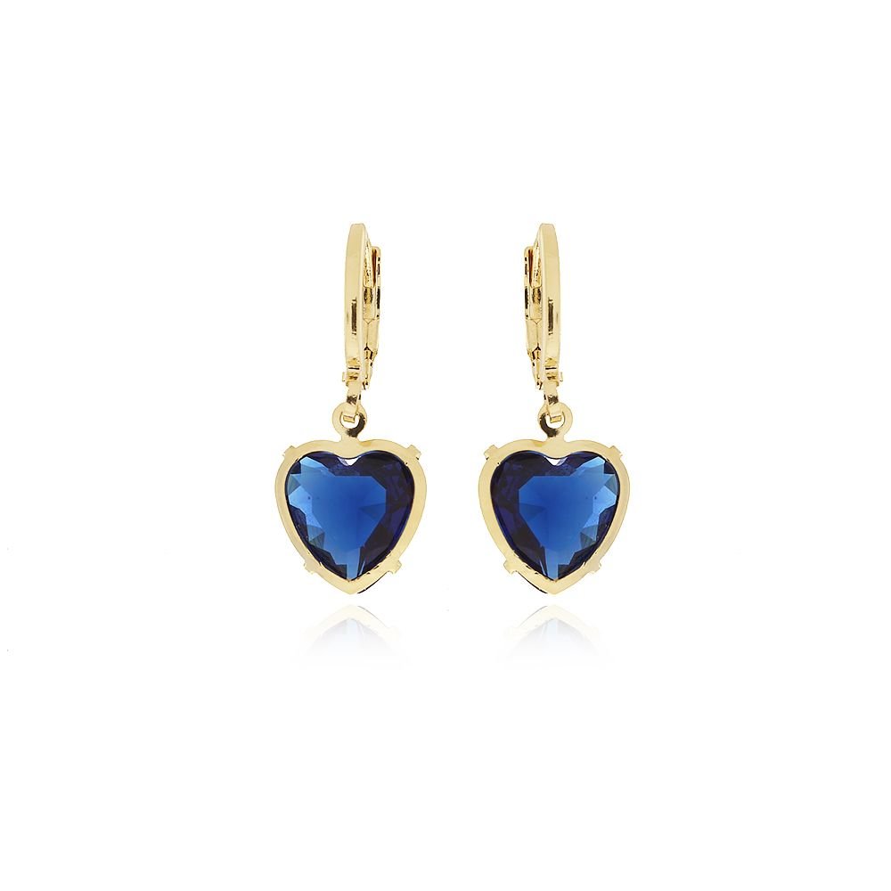 Encante-se com esse brinco!Este lindo brinco DE CORAÇÃO CRAVEJADO AZUL ARGOLA ARTICULADA é feito com LATÃO BANHADO A OURO 18K de alta qualidade.