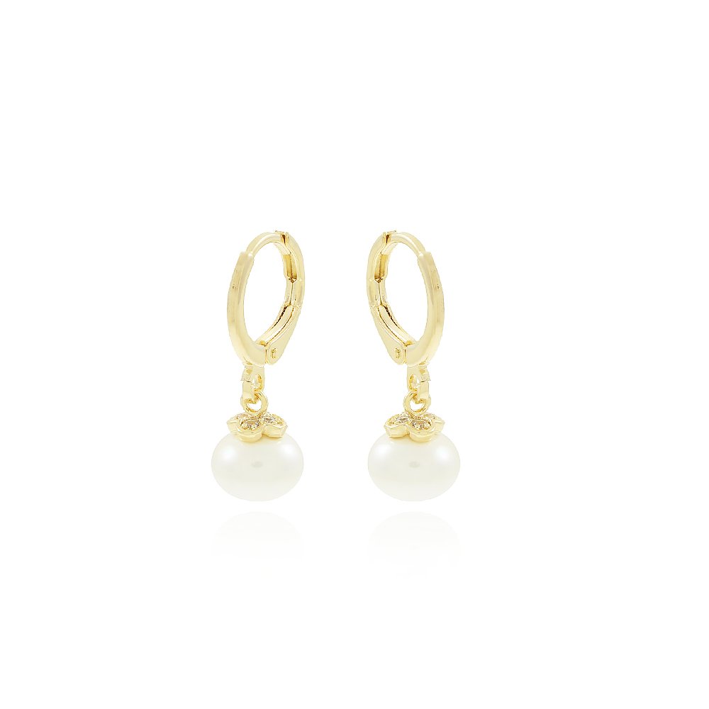 BRINCO DE ARGOLA ARTICULADA COM PÉROLA E ZIRCÔNIAS.DIMENSÕES / PESO: - PESO: 1,3gr; MATERIAL: - LATÃO BANHADO A OURO 18K.
