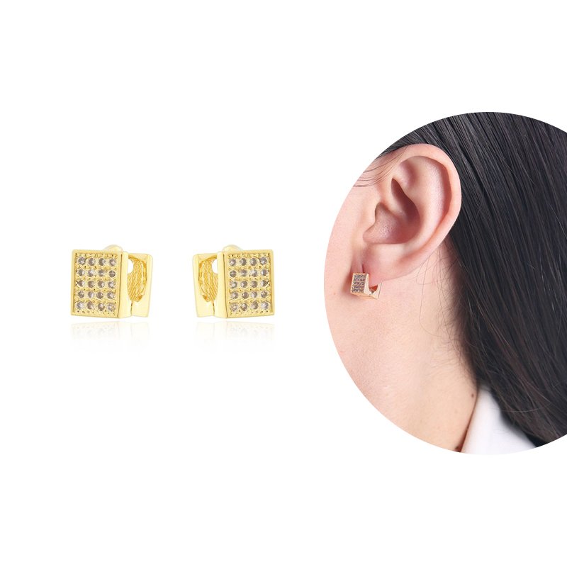 Brinco de argolinha quadrada cravejada.