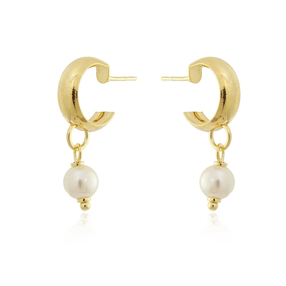 BRINCO DE MEIA ARGOLINHA COM PÉROLA.Dimensões / Peso: - Peso: 2,4g, 13mm Material - Latão banhado a Ouro 18k.