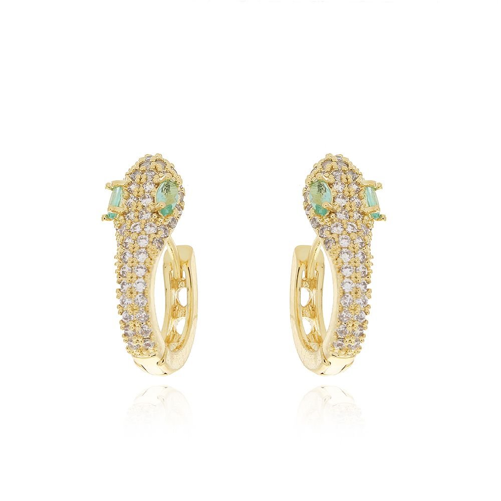 BRINCO DE ARGOLINHA COBRA CRAVEJADA CRISTAL E ESMERALDA.Dimensões: / Peso: