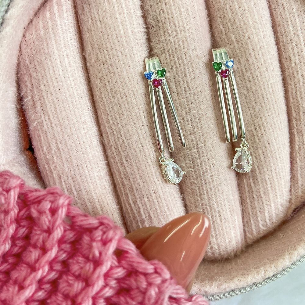 Ag-Br-1041 Brinco Longo Detalhado Cravejado Colorido E Gota Cristal