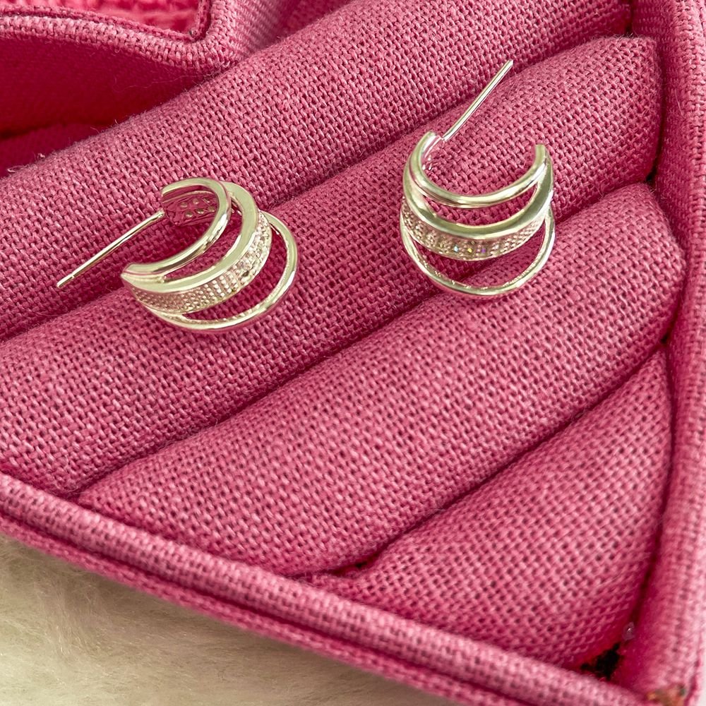 Encante-se com esse brinco!Este lindo BRINCO MEIA ARGOLA CRAVEJADO DE ZIRCÔNIAS é feito a PRATA 925 de alta qualidade.