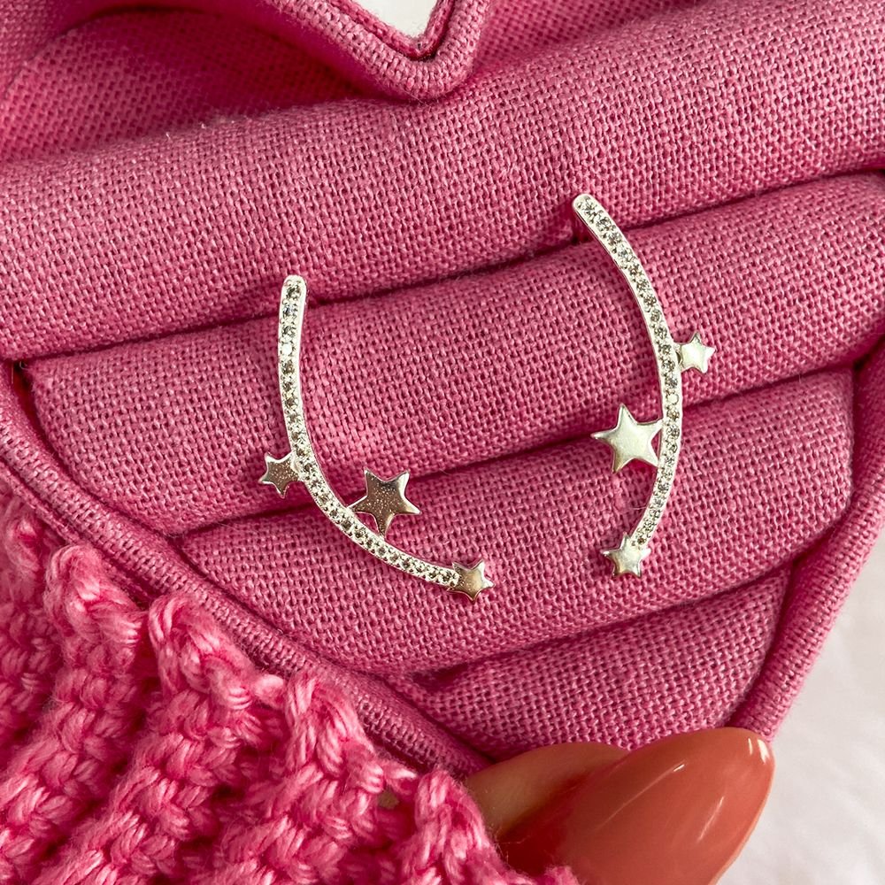 Encante-se com esse brinco!Este lindo BRINCO CRAVEJADO DE ZIRCÔNIAS CRISTAL é feito a PRATA 925 de alta qualidade.
