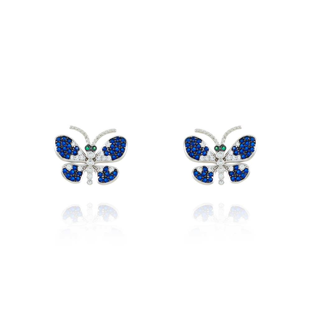 Encante-se com esse brinco!Este lindo brinco DE BORBOLETA CRAVEJADO CRISTAL + AZUL ESCURO é feito a PRATA 925 de alta qualidade.
